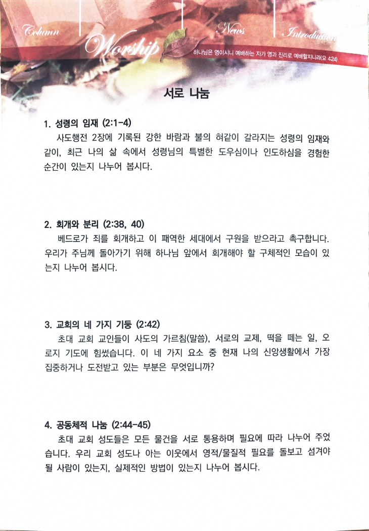 예수님의 말씀이 선포되고 성령이 충만한 교회