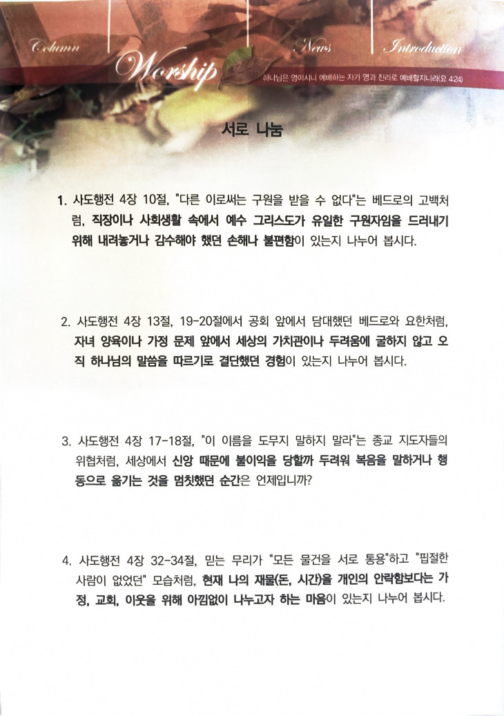예수님의 말씀이 선포되고 성령이 충만한 교회