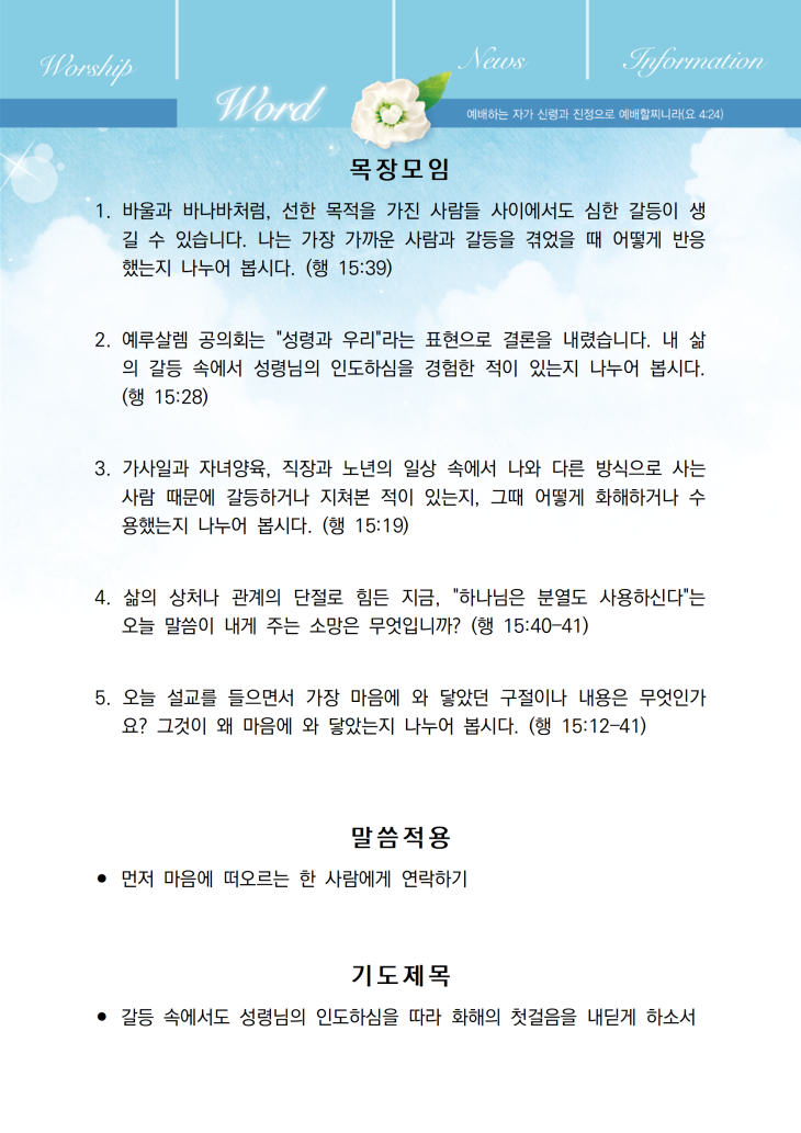 예수님의 말씀이 선포되고 성령이 충만한 교회