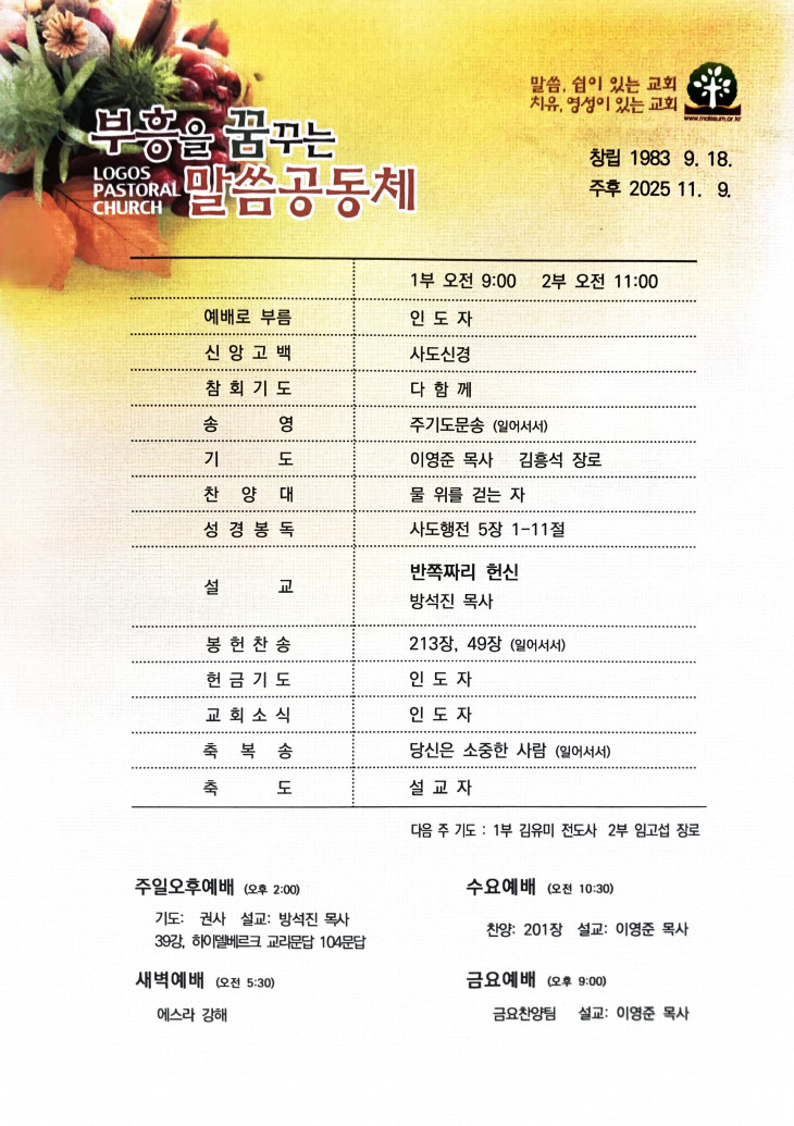 251109 추수감사 특별새벽기도회 > 주보
