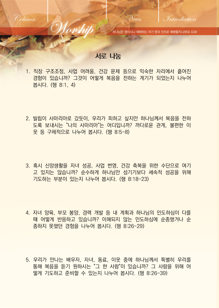 예수님의 말씀이 선포되고 성령이 충만한 교회
