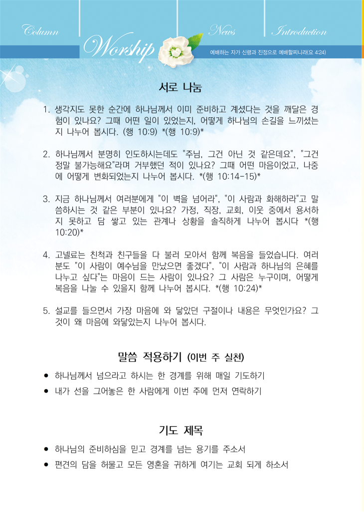 예수님의 말씀이 선포되고 성령이 충만한 교회