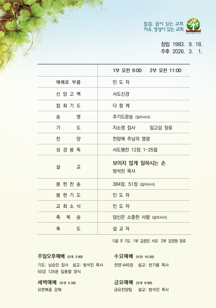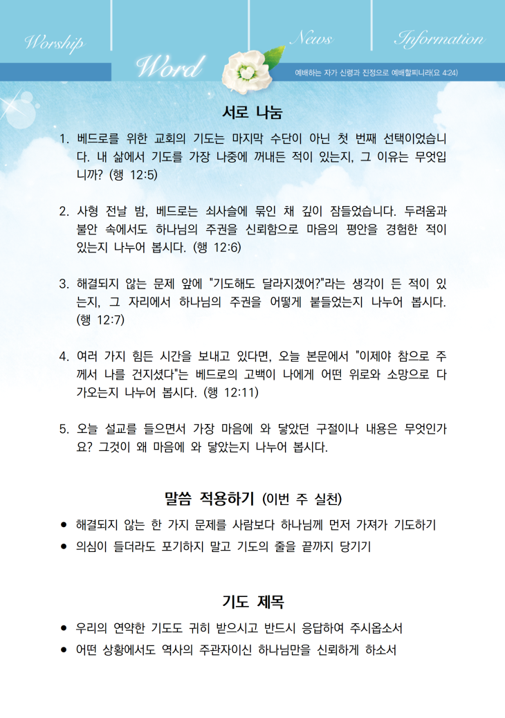 예수님의 말씀이 선포되고 성령이 충만한 교회